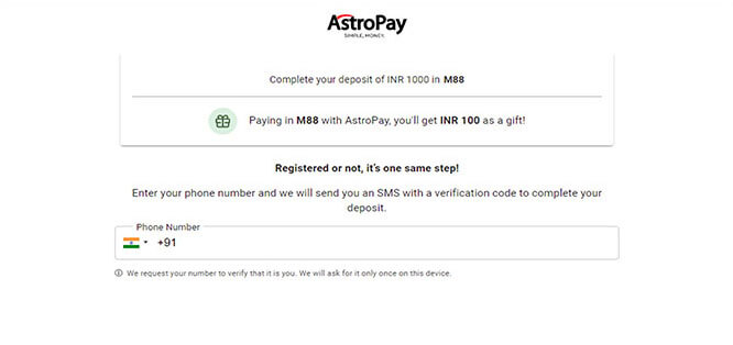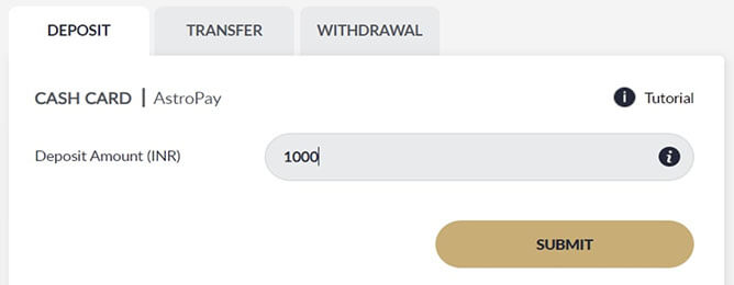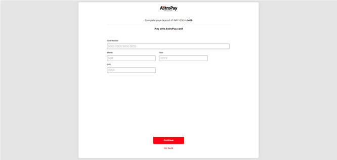 Submit Deposit using Astropay Card, click I have an astropay card