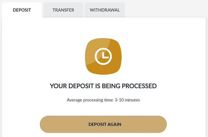 Transaction will be proccessed within 3-10 minutes