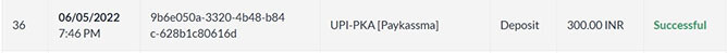 Once payment successful message appears, status of transaction will be automatically reflected in the Deposit Page.