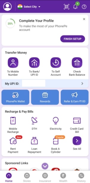 Login to PhonePe app On Dashboard Click on To Bank / UPI ID to transfer fund