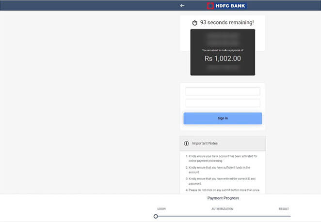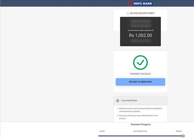 Select the payment bank and click NEXT