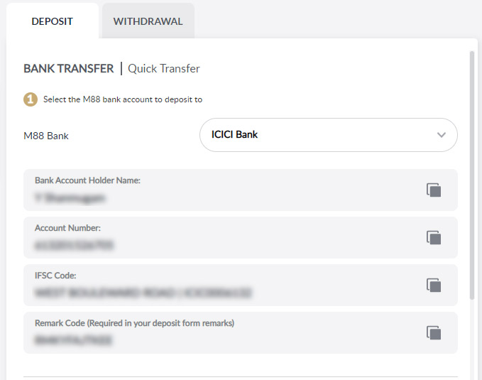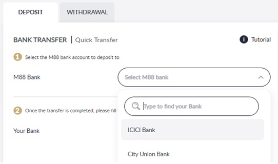 Deposit tutorial to find M88 bank account and guideline to make deposit