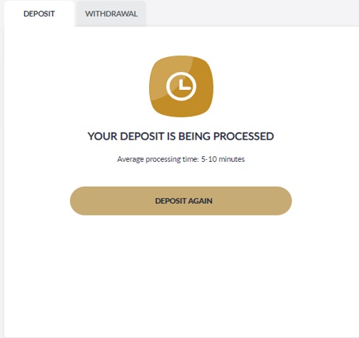 - Deposit will be processed within 5 - 10 minutes estimation time