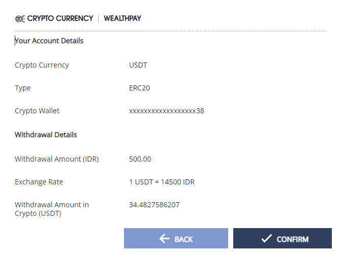 - Once all details are confirmed, click CONIFIRM to proceed with the withdrawal